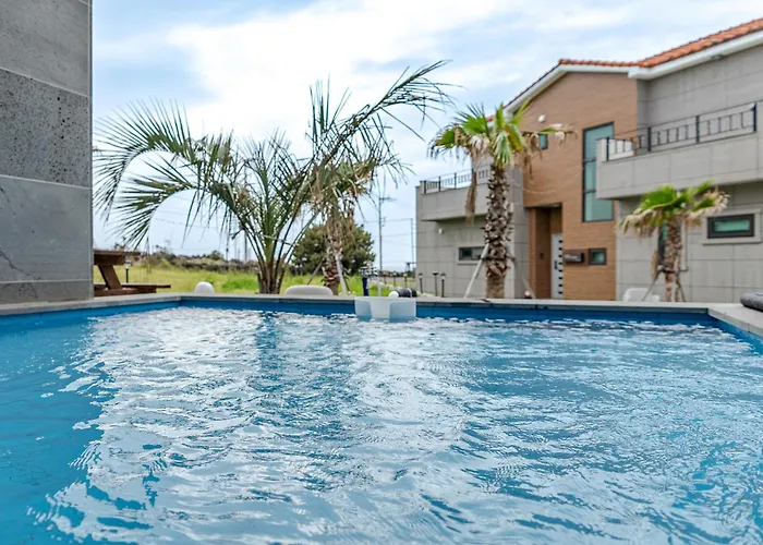 Located in the Hangyeong district, the 3-bedroom Beautipool Pension Jeju villa is around a 25-minute walk from Geumneung Stone Park and offers a Jacuzzi. This property includes a free private car park and a terrace with views of the sea.